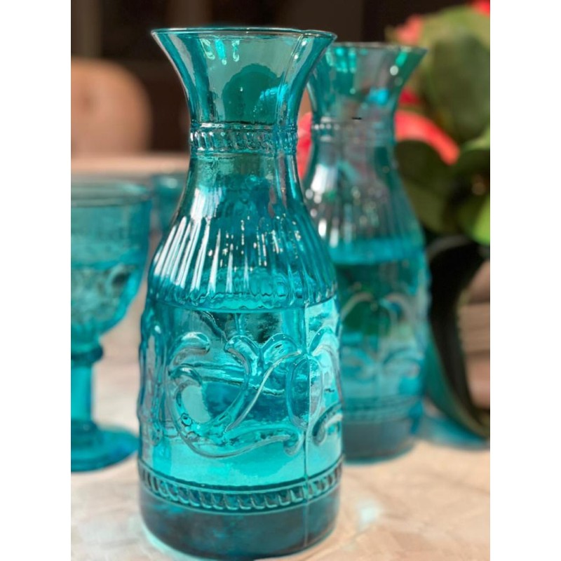 Garrafa de vidrio con textura de garigoles todo alrededor. Ideal para agua, vino o tu bebida favorita. Adaptable a cualquier ambiente y lugar. Busca las copas para hacer el set.